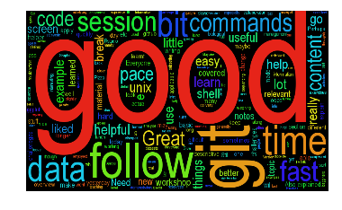 Once the feedback is the comments variable, all that is needed is something to make the wordcloud. The virtues of libraries can be reiterated here, and it's relatively easy thanks to this wordcloud library from Andreas Mueller (NB: Install from most recent version in GitHub).